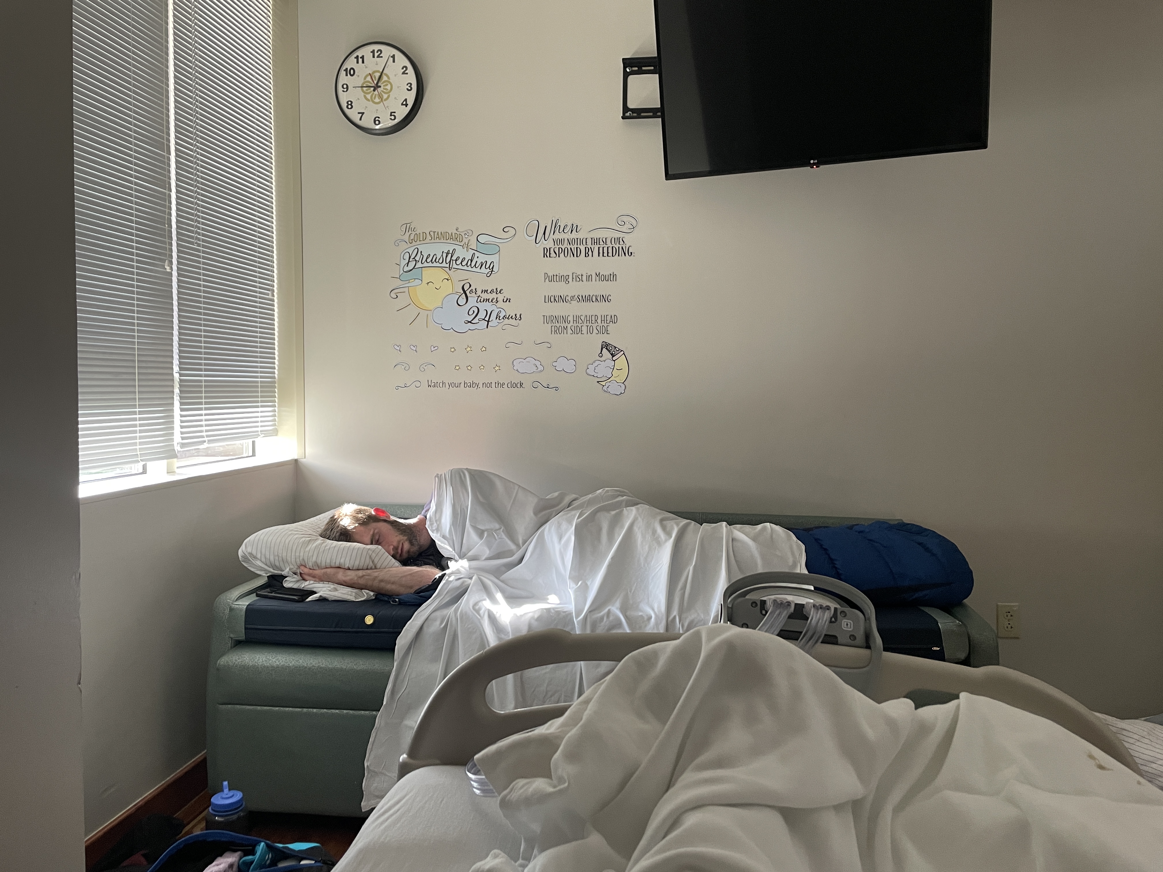 This is the time for momma to recover a bit from their experience with the 24/7 support of nurses and lactation consultants. Depending on your birth (e.g. vaginal vs. c-section) and the health of mom and baby, they will suggest that you stay for 2-4+ days.
