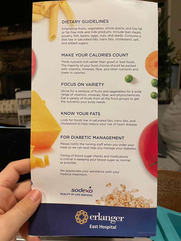 As I mentioned, there is a special postpartum menu at Erlanger East that you can order from. I’ll share it below.